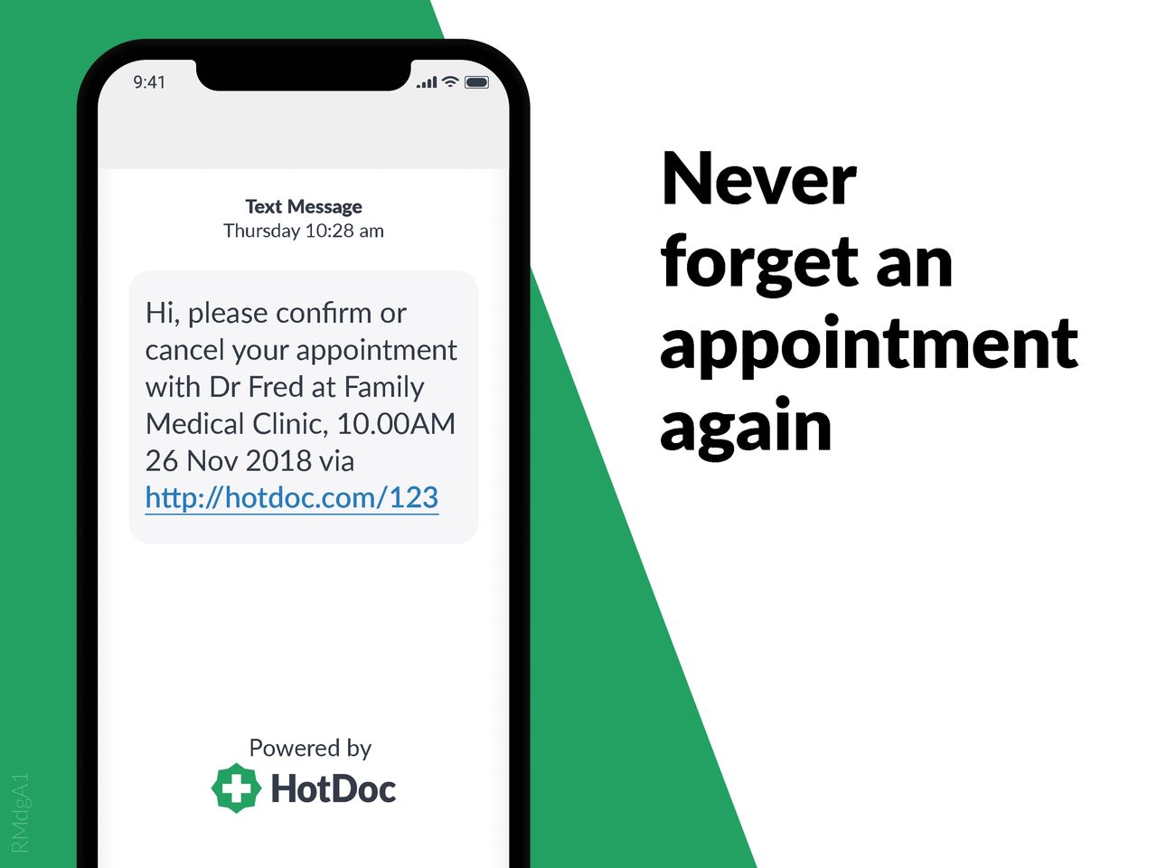 An electronic sms reminder text text appointment reminders. The recipient doesn't necessarily have to reply since the message is more of a heads up. Text & email reminders for appointments, meetings & more. Patient care should be the number one priority for all healthcare practices. Goreminders is the easiest way to get started with automatic text.